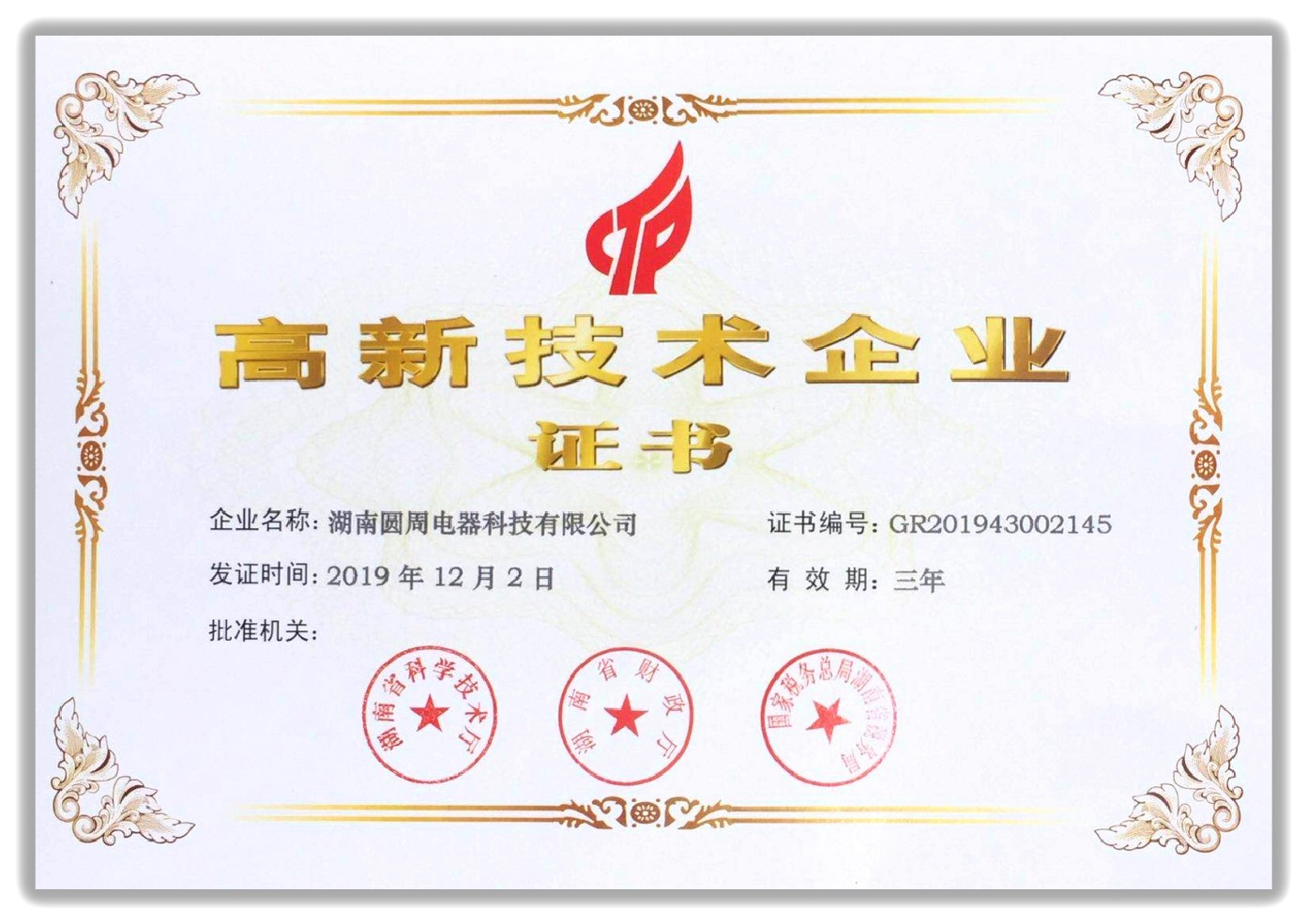 2019 公司獲得湖南高新技術(shù)企業(yè)稱(chēng)號(hào)
